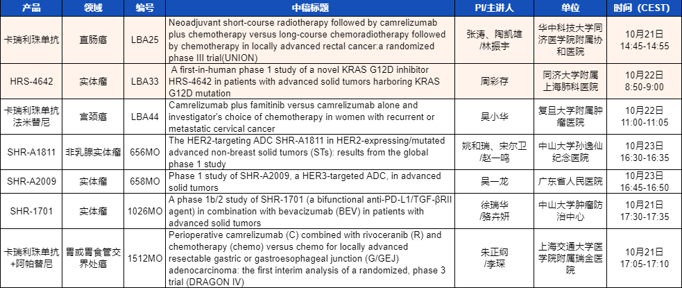 ESMO 2023 GA黄金甲医药产品相关研究一览