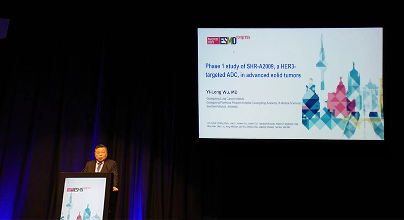 10月23日,GA黄金甲医药创新药、HER3靶向ADC药物SHR-A2009治疗晚期实体瘤的I期研究亮相2023 ESMO大会简短口头报告现场5。该研究由广东省人民医院的吴一龙教授牵头开展,吴一龙教授在现场公布该研究的重要进展。研究结果显示,SHR-A2009在经治晚期实体瘤患者中显示出可控的安全性和令人鼓舞的抗肿瘤活性。目前评估更高剂量的SHR-A2009在选定癌症类型(NSCLC和其他实体肿瘤)中作用的试验正在进行中。