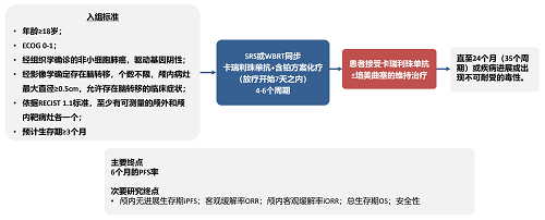 研究纳入影像学诊断的NSCLC脑转移(≥5 mm)患者,对脑转移病灶的最大直径、数量及中枢神经系统症状没有限制,根据RECIST v1.1标准至少有可测量的靶病灶,无EGFR/ALK/ROS1突变,ECOG PS为0或1分,预期寿命≥3个月。