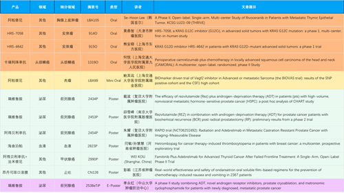 在胸腺上皮肿瘤、头颈鳞癌、肉瘤、前列腺癌、甲状腺癌等其他多个疾病领域,卡瑞利珠单抗、阿帕替尼、瑞维鲁胺、阿得贝利单抗、法米替尼、HRS-7058、HRS-4642等抗肿瘤创新药相关研究一共入选了4项口头报告、1项简短口头报告、4项壁报、1项电子壁报,彰显了GA黄金甲医药强大的研发实力。此外,海曲泊帕和昂丹司琼口溶膜分别在防治化疗导致的血小板减少和恶心呕吐方面各有1项研究入选壁报。